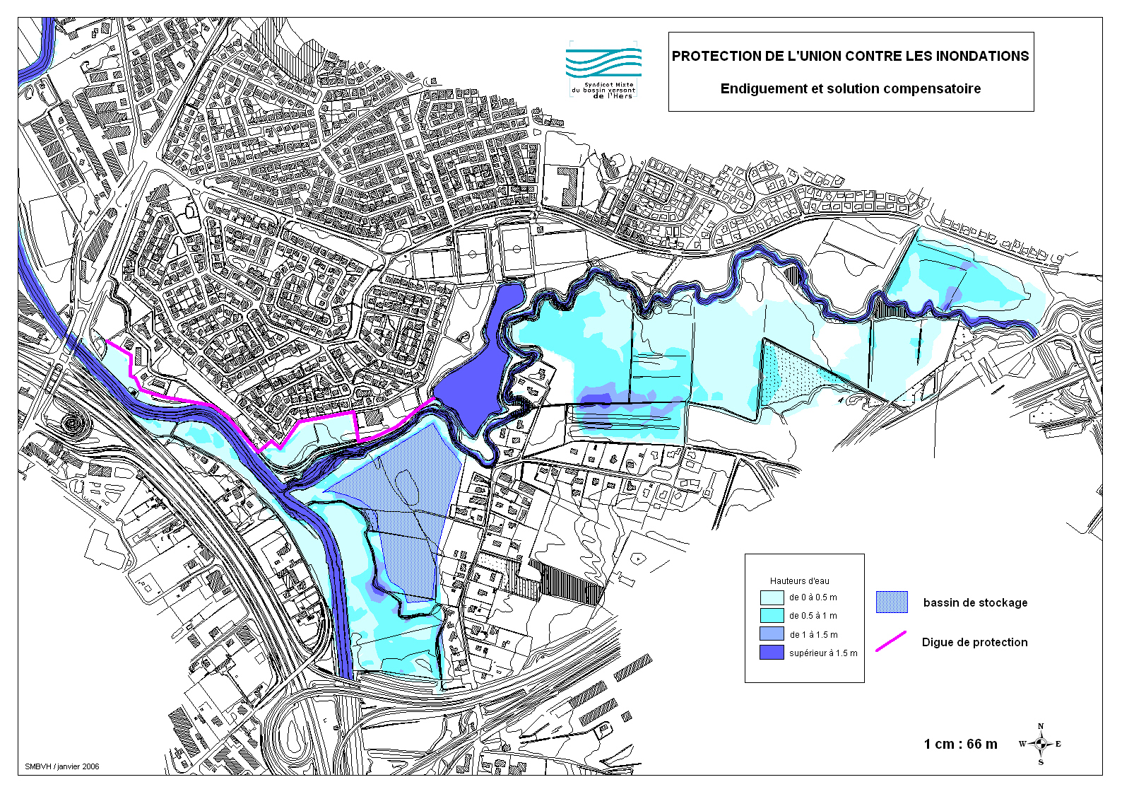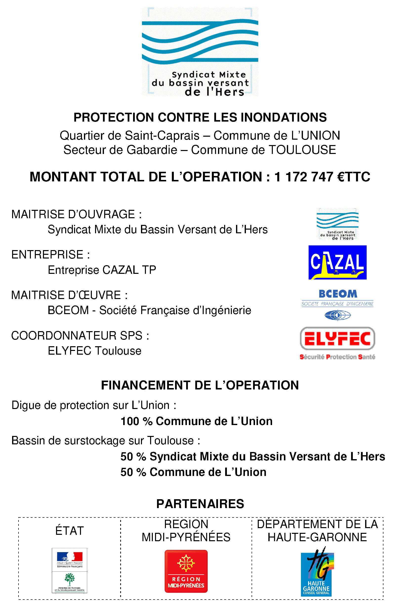 Après 2 ans d'études à la confluence de l'Hers et de la Sausse (2005-2006), des travaux ont permis de protéger la commune de L'Union contre les crues de fréquence centennale de 2 cours d'eau (2007). Les aménagements ont consisté à :