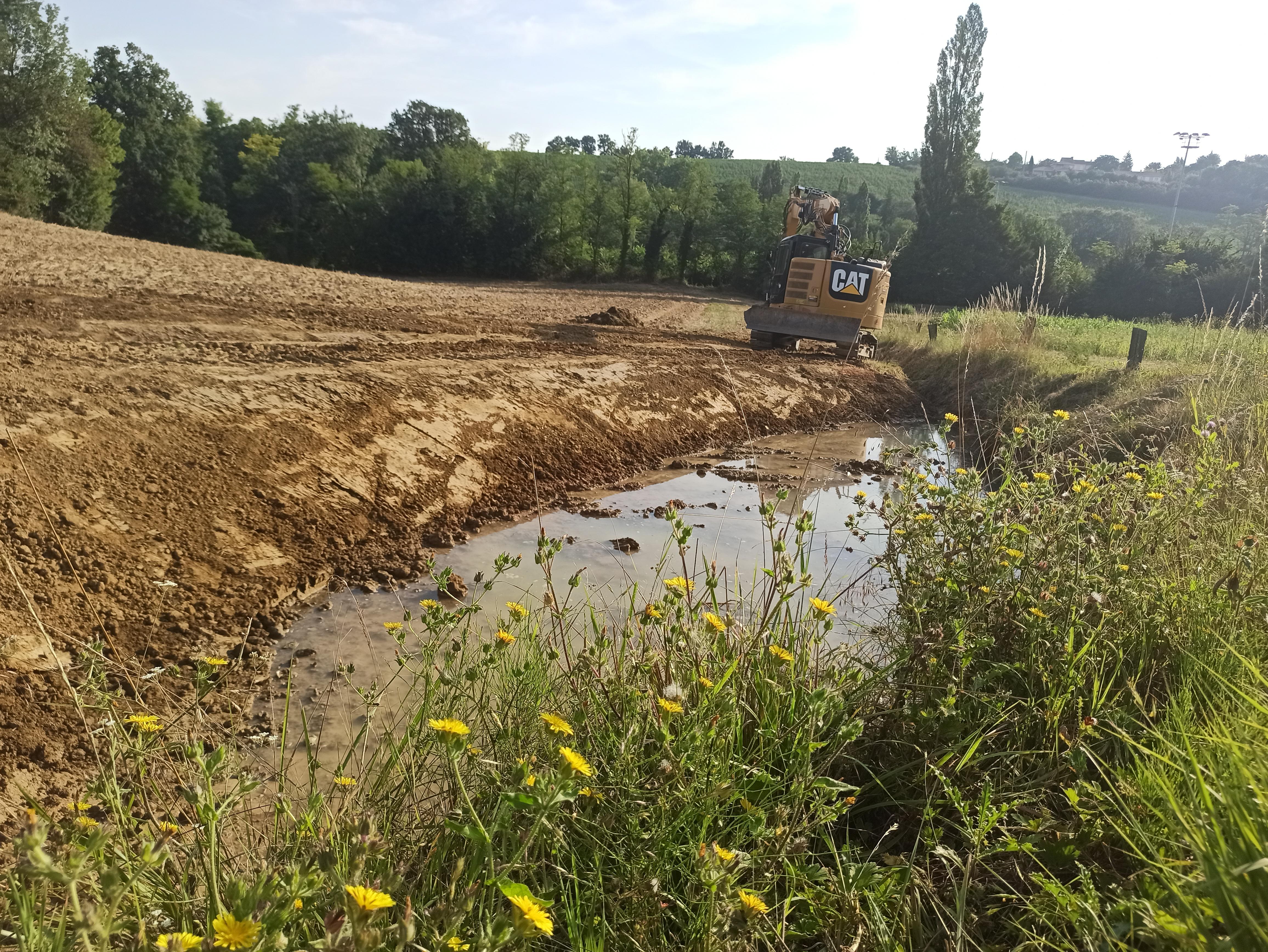 Afin de stopper l’enfoncement du lit et apporter de la diversité aux écoulements dans la Vendinelle, des matériaux alluvionnaires ont été apportés au cours d’eau sur un linéaire de 1235m à l’aval du centre de la commune. Par ailleurs après concertation avec le propriétaire riverain, des zones humides ont été restaurées sur une surface totale de 660m². Une mare temporaire a été creusée en fond de vallée, une autre a été restaurée et enfin des anciens bras de la Vendinelle ont été creusés, ils seront en eaux plus souvent en hiver.