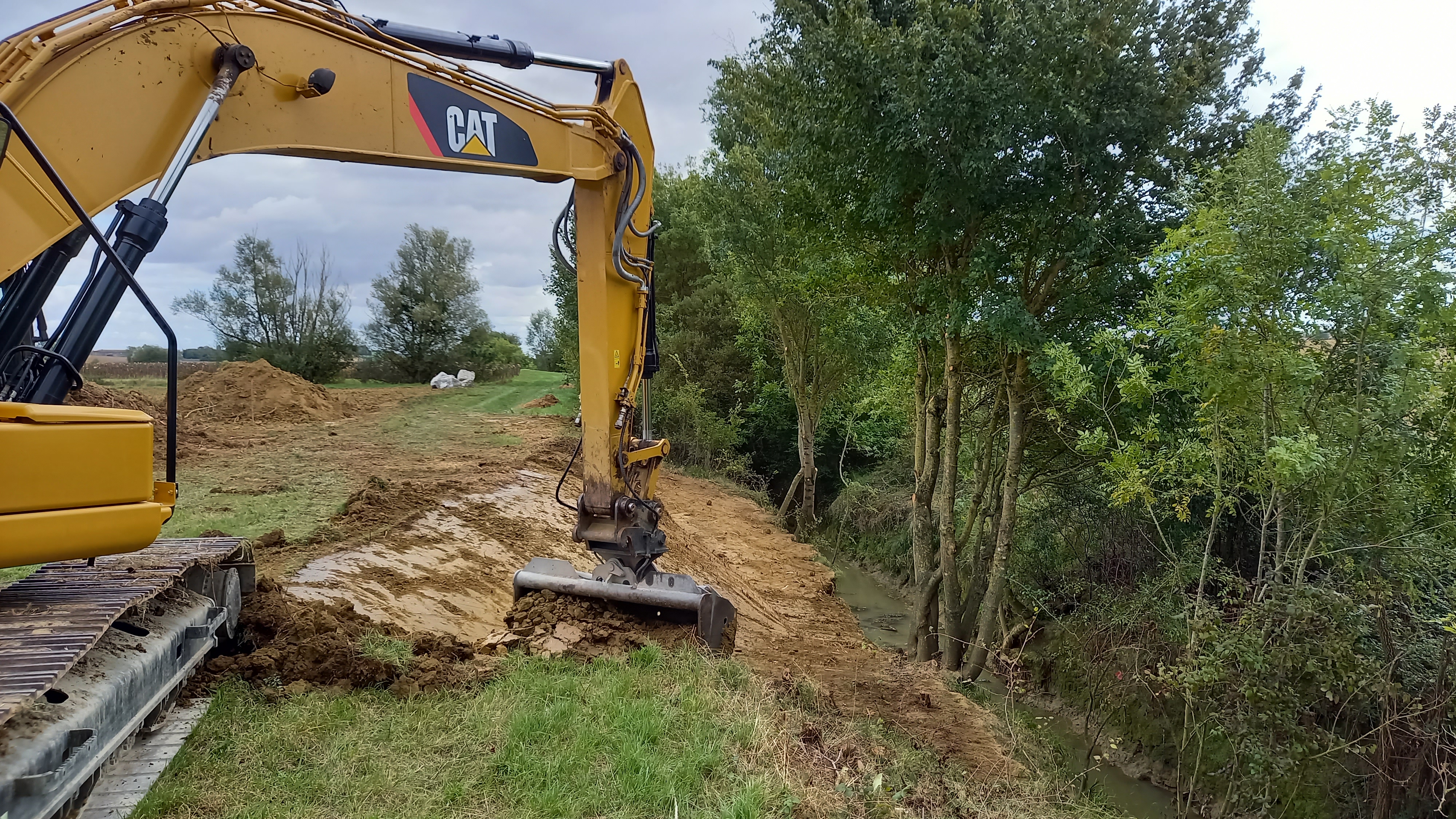 Les travaux de renaturation de la Saune ont consisté à : retaluter la berge en rive droite, créer des accès au cours d’eau, créer un lit moyen, diversifier les écoulements par des banquettes et radiers et reconstituer le substrat du fond du lit par l’apport de graviers et galets. La berge en rive droite a été replantée en janvier 2022 et une haie a été créée sur la bande enherbée appartenant à la commune. La restauration de la rivière et de la végétation associée serviront de refuge pour la biodiversité.